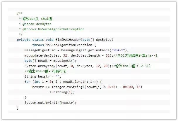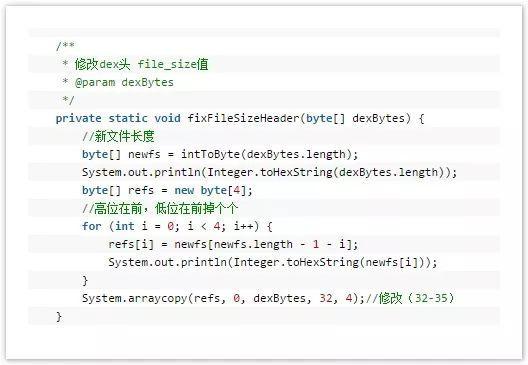 因为将一个文件(加密之后的源Apk)写入到Dex中,那么肯定需要修改文件校验码(checksum).因为他是检查文件是否有错误。那么signature也是一样,唯一识别文件的算法。还有就是需要修改dex文件的大小。