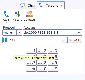 回到 Yate 客户端,我呼叫了一个外线并成功完成了这个呼叫。
