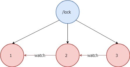 注意:防止还没有执行到的进程死掉,要更新监听顺序。例如:2监听1,3监听2,如果2进程提前死掉,3要监控到这种状态,判断是否是2关闭,还是2释放锁,如果不是正常关闭,要去监听1更新监听。
