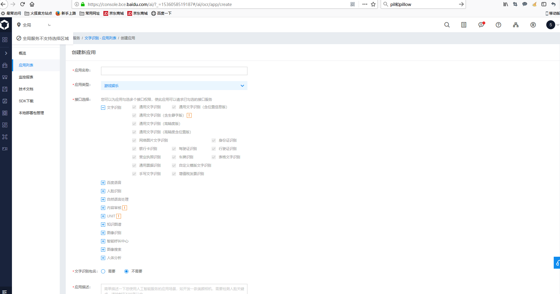 我们需要APPP_ID、API_KEY、SECRET_KEY,我们去百度云申请