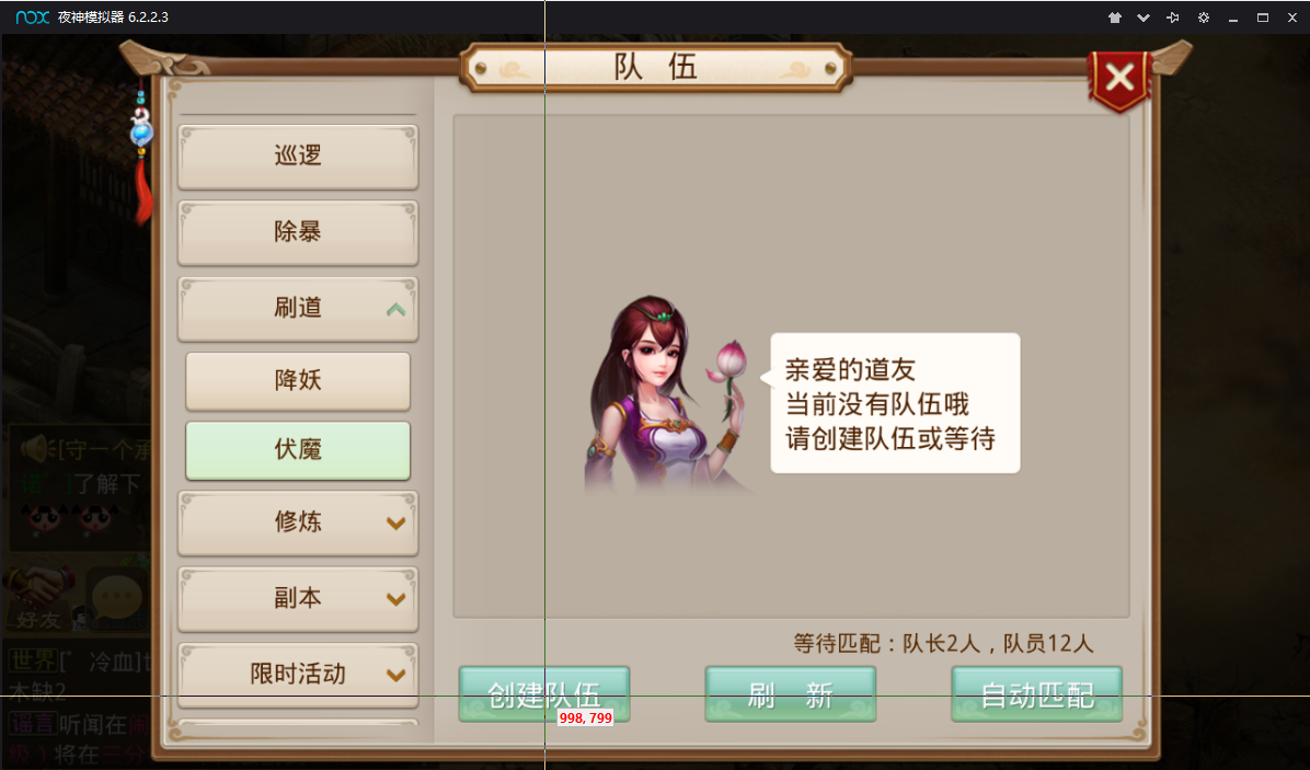 如果两位长老都不存在,说明队伍里已经有三人。此时关闭刷道窗口,点击陆压真人,对话,开始刷道
