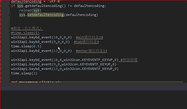 win32api.keybd_event(18,0,0,0) #alt键位码是18