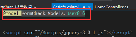 首先,在HomeController中新建一个方法,取名为GetInfo(),然后添加对应的视图,然后引用User816: