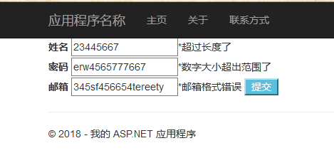 [StringLength(5,ErrorMessage ="*超过长度了") ] public string userName { get; set; }