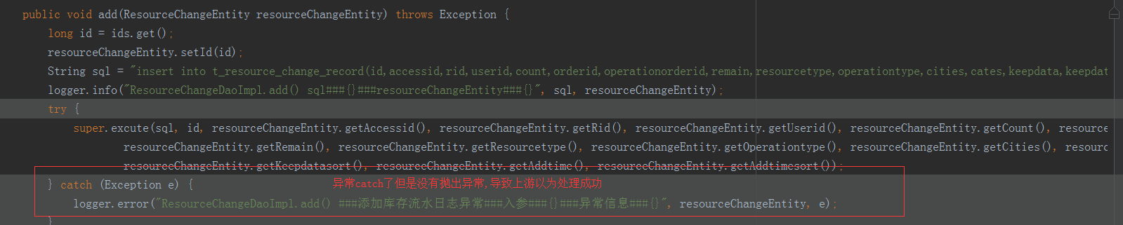 持久层中尽量不进行异常捕获,如果需要捕获接口中必须要有返回值