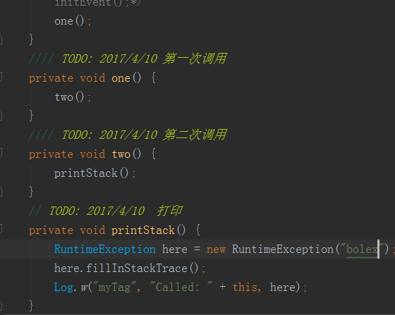 //在最后你想看的方法中加入以下代码,就可以神奇的在日志中打印出来方法调用顺序