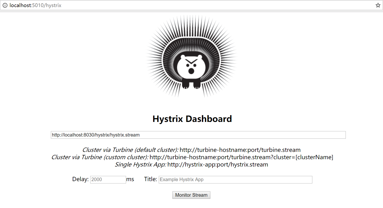 server: port: 5010spring: application: name: hystrix-dashboard-service