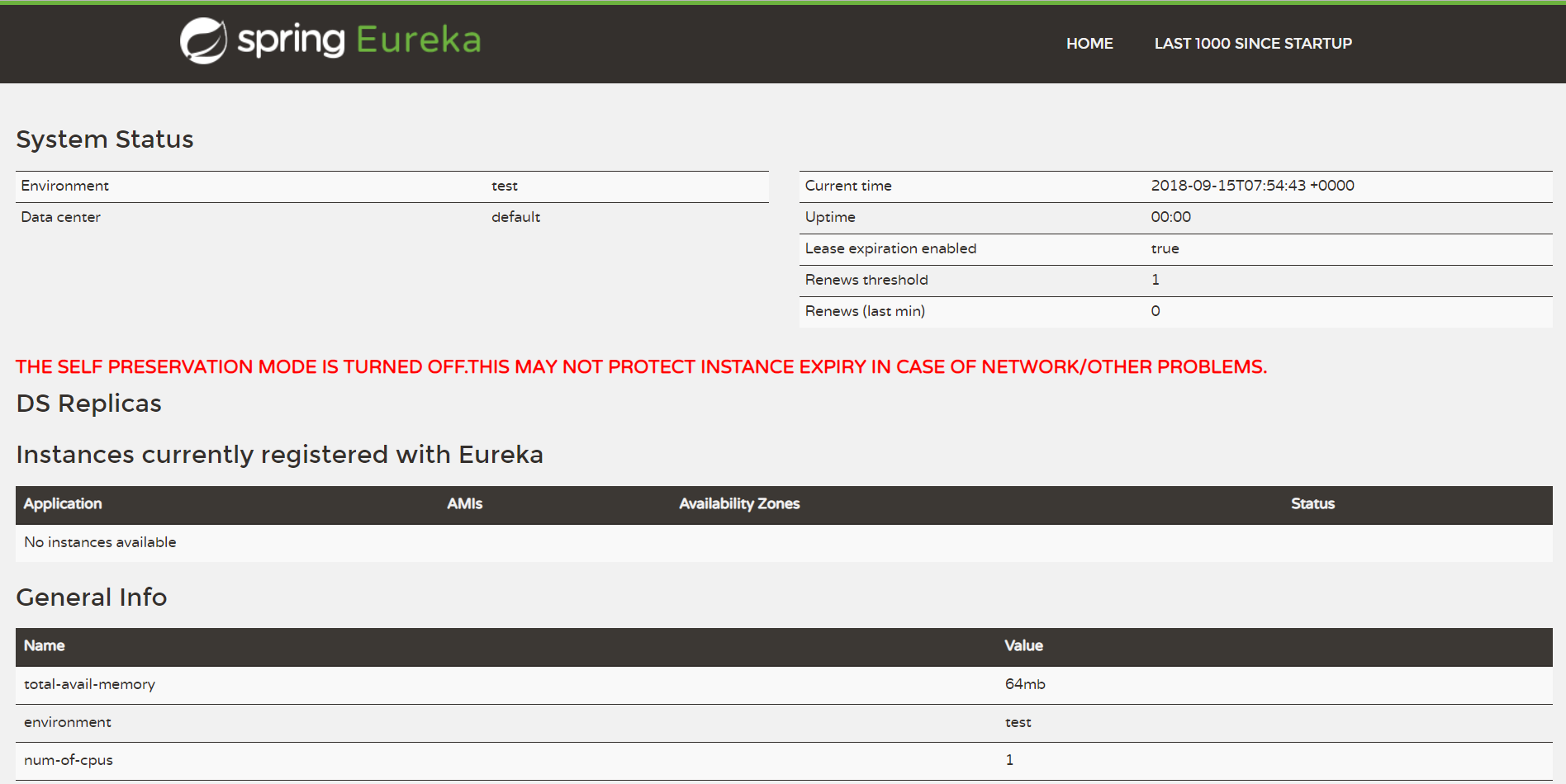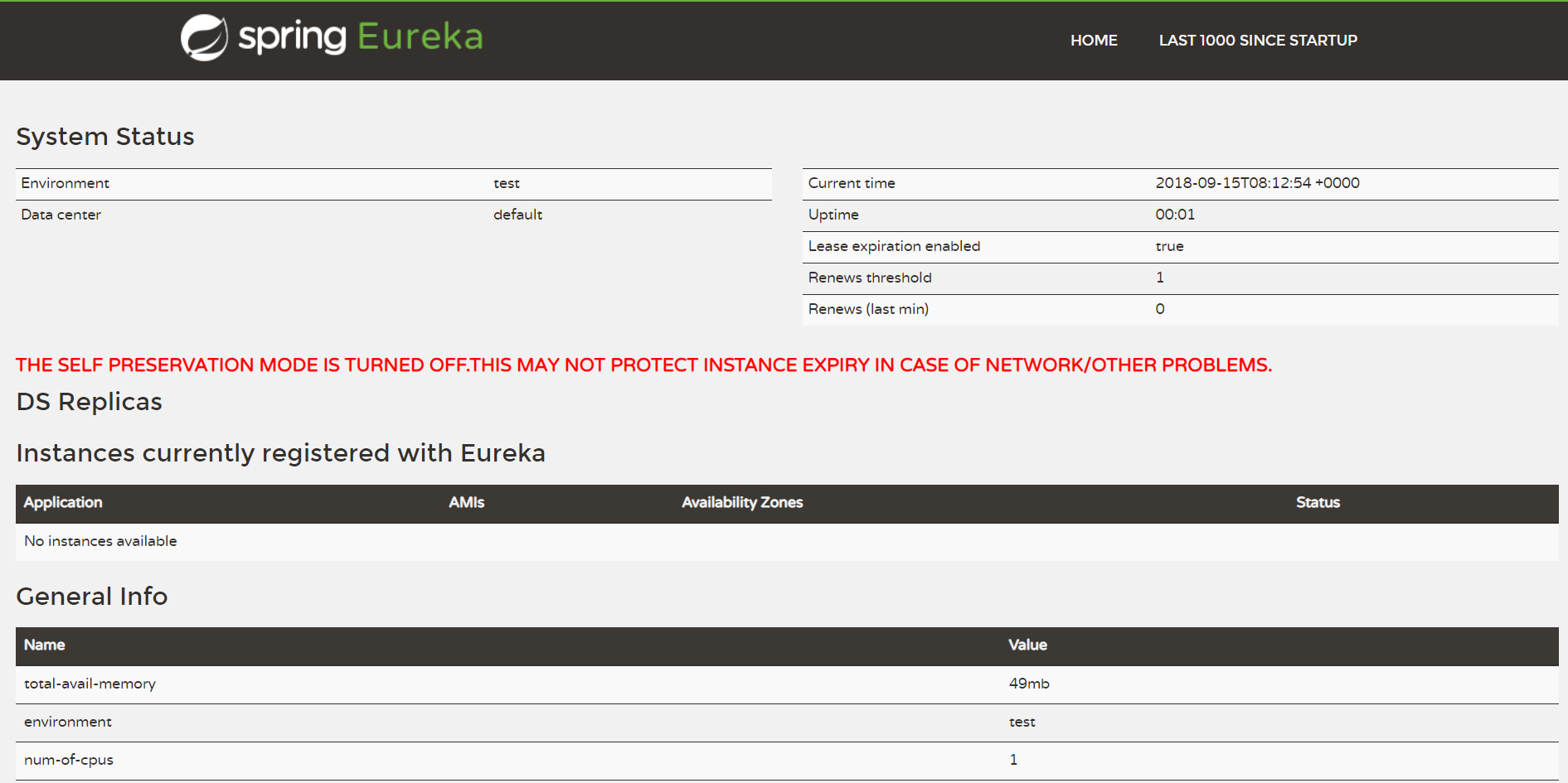(5)验证是否已成功启动:访问http://docker宿主机IP:8761/,可以正常显示Eureka Server首页。