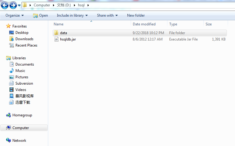 1.把下载的jar包..\hsqldb-2.2.9\hsqldb\lib\hsqldb.jar放到hsql目录下