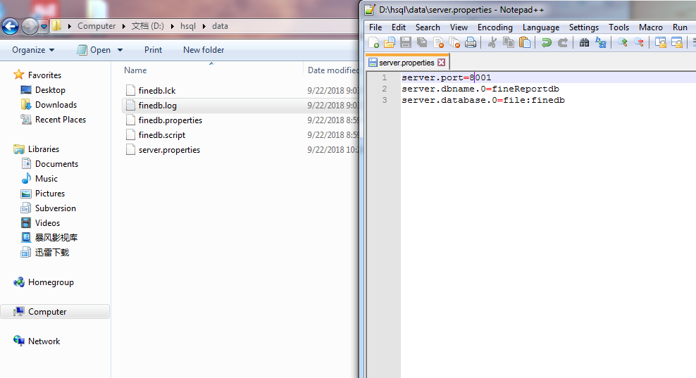 4.创建system.properties文件,dbname和port是随便指定的,finedb的名字是要与需要访问的数据文件名字保持一致。