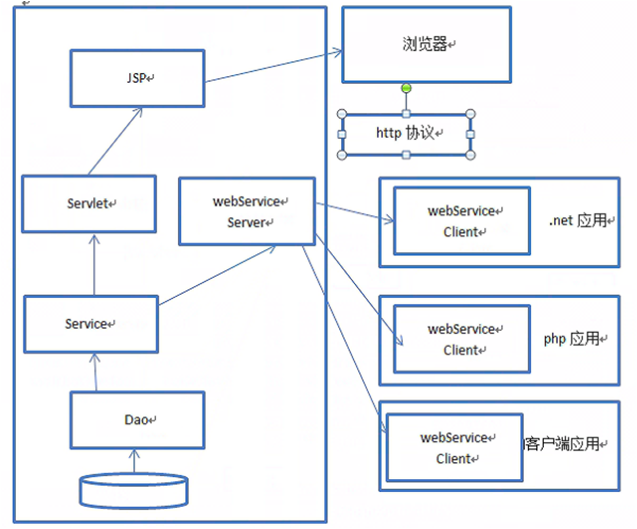 客户端:调用远程WebServiec的客户端应用程序。可以在任何系统下使用任何语言调用。