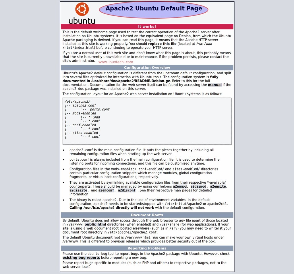 linuxtechi@ubuntu:~$ sudo apt updatelinuxtechi@ubuntu:~$ sudo apt install apache2 -y
