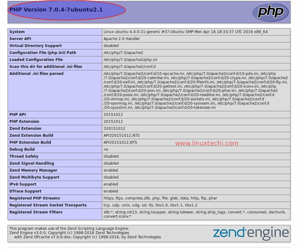 linuxtechi@ubuntu:~$ sudo apt install php7.0-mysql php7.0-curl php7.0-json php7.0-cgi php7.0 libapache2-mod-php7.0