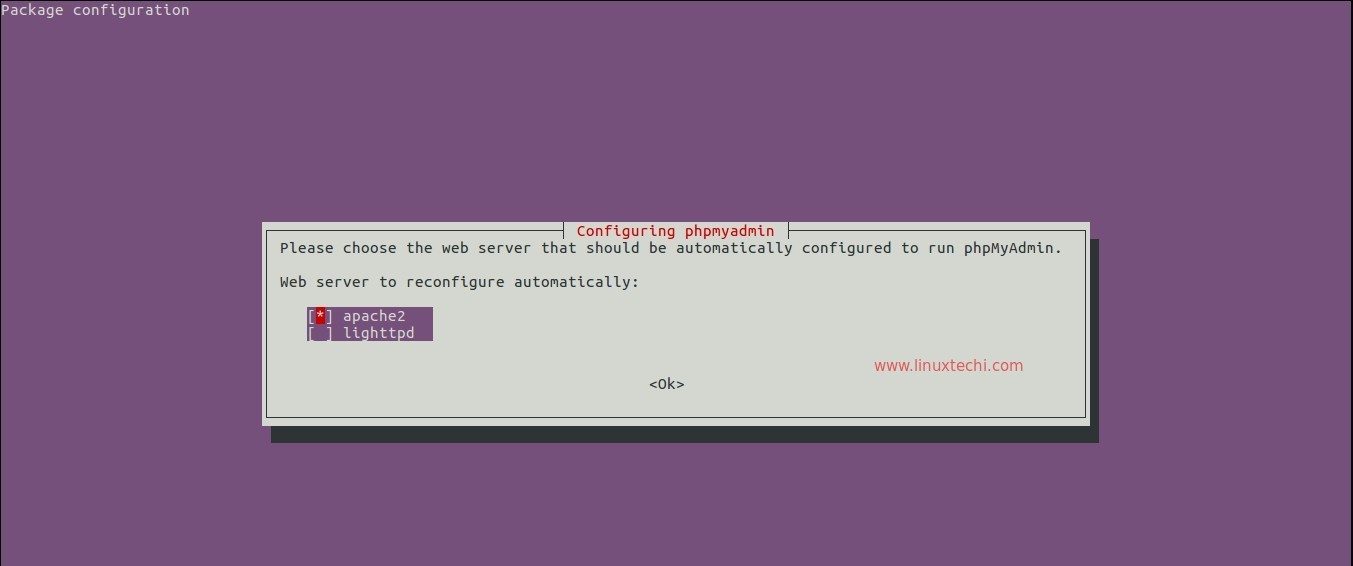 在以下的安装过程中,它会提示我们选择 phpMyAdmin 运行的目标服务器。