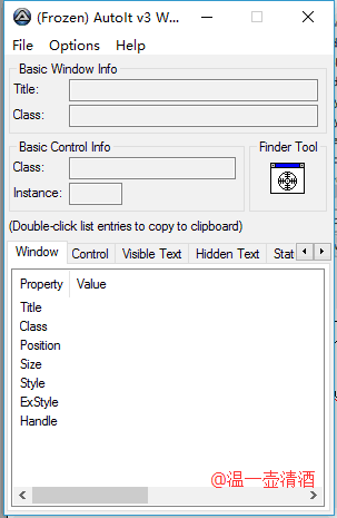 ①打开autoit工具包下的AutoIT Window Info(x64)工具,版本按自己电脑系统来,界面如下所示: