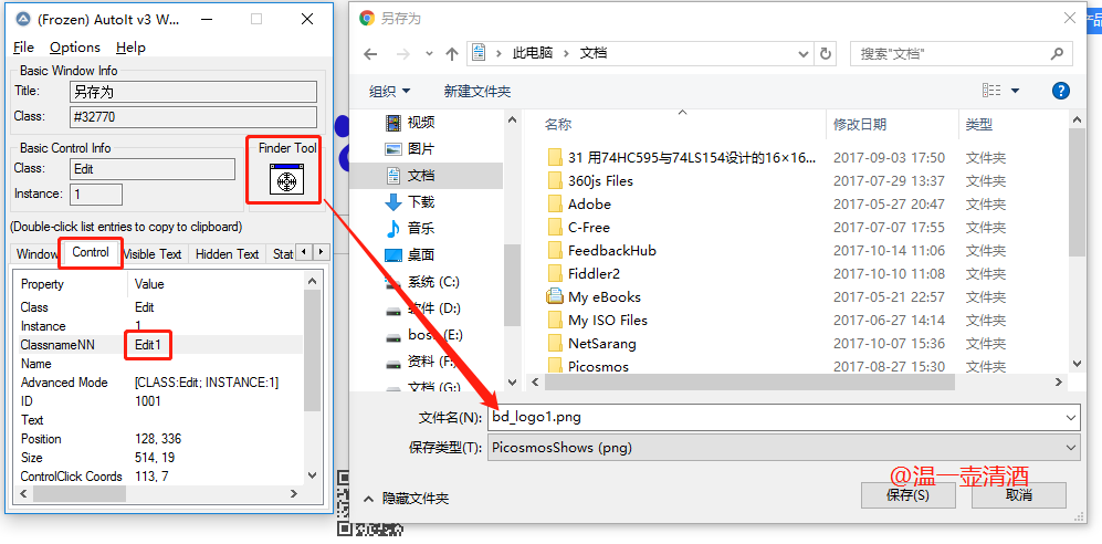 1.AutoIT Window Info用来识别Windows控件,根据识别的控件信息编写脚本;x86为32位