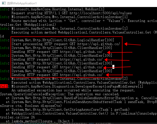 { var client = _httpClientFactory.CreateClient("GitHub"); string result = await client.GetStringAsync("/"); return Ok(result);