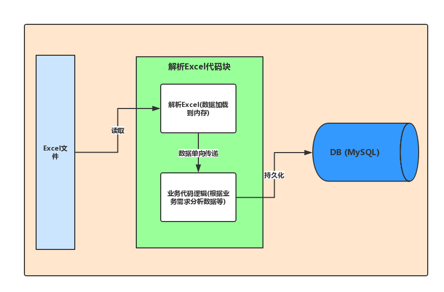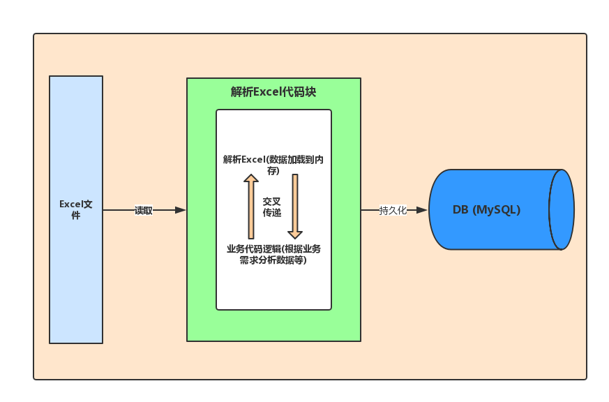1.非动态模式:将Excel数据加载到内存与业务代码逻辑混合,数据在解析期间交叉传递。弊端:每新增一个需要解析的Excel,解析Excel代码块就需要重新开发,代码复用率底下、可扩展性也低。