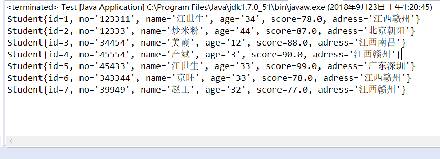 1 package com.hdbs.beans; 2 3 import java.util.ArrayList; 4 import java.util.List; 5 6 /** 7 * @author :WindsJune/博客园:WindsJune 8 * @version :1.1.0 9 * @date :2018年9月20日 下午6:05:57 10 * @comments : 11 */ 12 13 public class Student implements Cloneable{ 14 15 /** 16 * id 17 */ 18 private Integer id; 19 /** 20 * 学号 21 */ 22 private String no; 23 /** 24 * 姓名 25 */ 26 private String name; 27 /** 28 * 学院 29 */ 30 private String age; 31 /** 32 * 成绩 33 */ 34 private float score; 35 36 /** 37 * 地址 38 */ 39 private String adress; 40 41 private List<Student> studentsList=new ArrayList<>(); 42 43 public Integer getId() { 44 return id; 45 } 46 47 public void setId(Integer id) { 48 this.id = id; 49 } 50 51 public String getNo() { 52 return no; 53 } 54 55 public void setNo(String no) { 56 this.no = no; 57 } 58 59 public String getName() { 60 return name; 61 } 62 63 public void setName(String name) { 64 this.name = name; 65 } 66 67 public String getAge() { 68 return age; 69 } 70 71 public void setAge(String age) { 72 this.age = age; 73 } 74 75 public float getScore() { 76 return score; 77 } 78 79 public void setScore(float score) { 80 this.score = score; 81 } 82 83 public String getAdress() { 84 return adress; 85 } 86 87 public void setAdress(String adress) { 88 this.adress = adress; 89 } 90 91 public List<Student> getStudentsList() { 92 return studentsList; 93 } 94 95 public Object clone() throws CloneNotSupportedException{ 96 return super.clone(); 97 } 98 99 @Override100 public String toString() {101 return "Student{" +102 "id=" + id +103 ", no='" + no + '\'' +104 ", name='" + name + '\'' +105 ", age='" + age + '\'' +106 ", score=" + score +107 ", adress='" + adress + '\'' +108 '}';109 }110 }