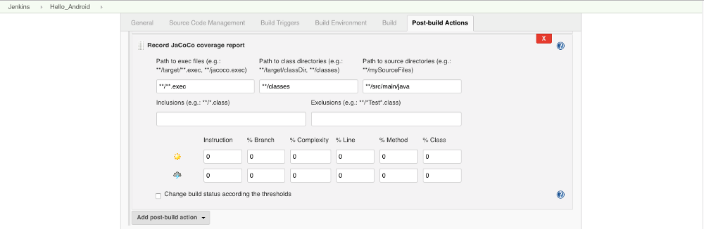 还要增加“记录 JaCoCo 覆盖率报告”它要创建一张显示代码覆盖率的图表。