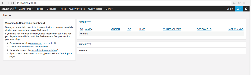 现在我们已经创建好了我们的 SonarQube 容器就叫 sonarqube它会在机器引导时启动自动链接搭配我们的数据库服务暴露在 localhost:9090使用 5.6.4 版本。