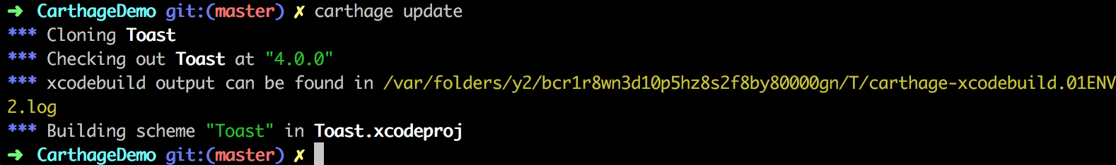 到这里,就完成了对Carthage的安装和使用。
