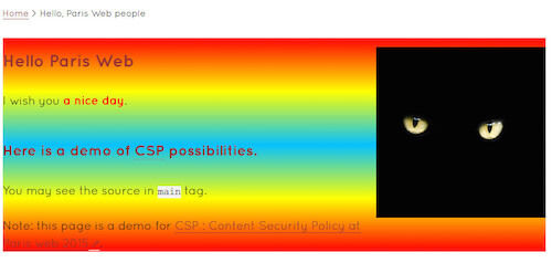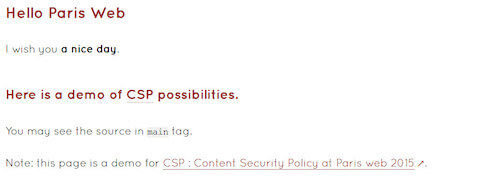 我为 Web 2015 巴黎大会上我的演讲 “CSP in Action”制作了一个简单的例子。