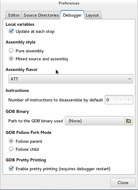 当你的程序分支时,Nemiver是可以设置为跟随子进程或者父进程的。想激活这个功能,请到“Debugger”下面的“Preferences(首选项)”。