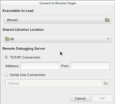 Nemiver支持远程调试,你可以在一台远程机器上设置一个轻量级调试服务器,然后你在另外一台机器上启动 nemiver 去调试运行在调试服务器上的程序。如果出于某些原因,你不能在远程机器上很好地驾驭 Nemiver或者GDB,那么远程调试对于你来说将非常有用。在“File”菜单下,指定二进制文件、共享库位置、远程地址和端口。