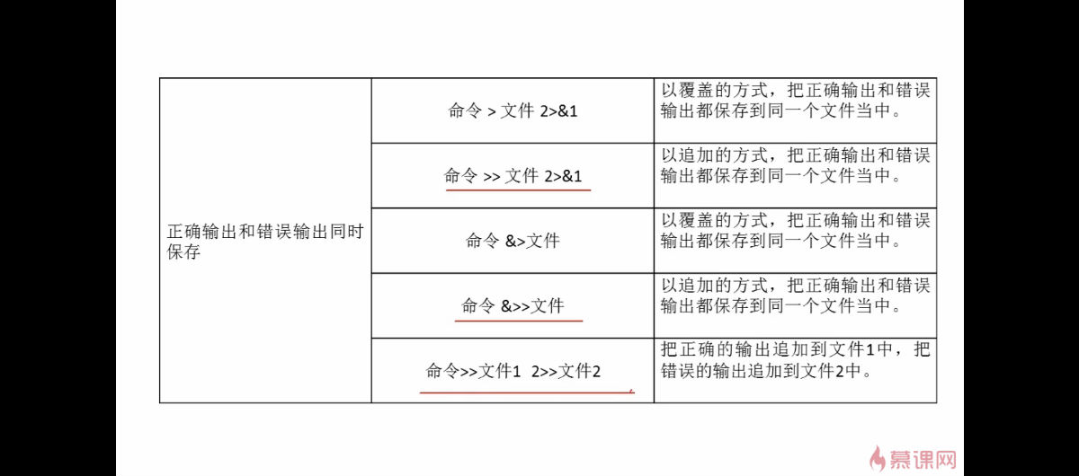 命令 >> 文件 “追加方式把命令的正确输出 输出到指定文件或设备中”