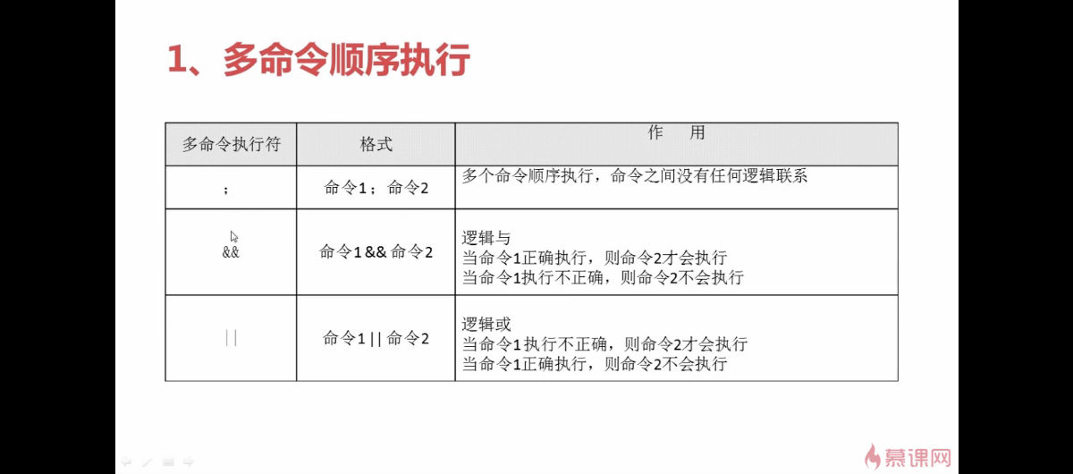"&&"连接命令 逻辑与执行 第一条执行 第二条执行 第一条错误 第二条不执行