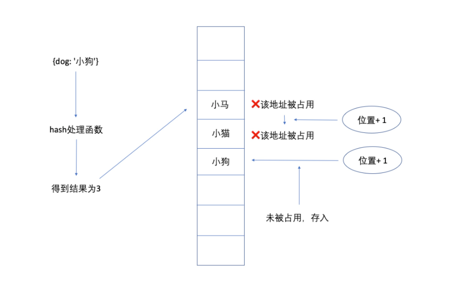 这种方式称为线性探测再散列 — 每次发现冲突后向后移动一个位置。