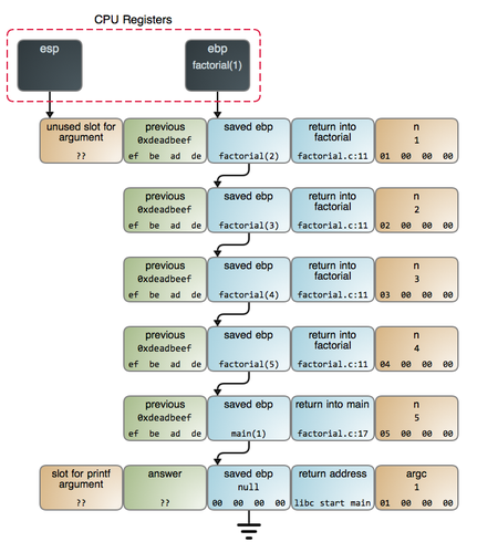 在递归调用的过程当中系统为每一层的返回点、局部量等开辟了栈来存储,因此递归次数过多容易造成栈溢出。