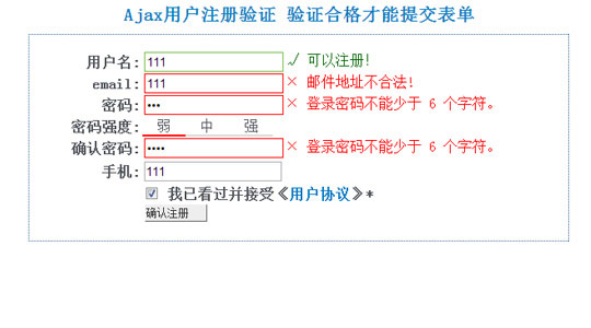 检测用户和email是否被注册,检测email格式是否正确,检测密码强度 <div id