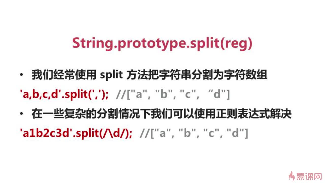 `a1b2c3d4e5f6g7`.split(/\d/g); ["a", "b", "c", "d", "e", "f", "g", ""] `a1b2c3d4e5f6g7`.split(/[^\d]/g); ["", "1", "2", "3", "4", "5", "6", "7"] "a,b,c,d,e,f,g,1,2,3,4,5,6,7".split(","); "a,b,c,d,e,f,g,1,2,3,4,5,6,7".split(","); ["a", "b", "c", "d", "e", "f", "g", "1", "2", "3", "4", "5", "6", "7"] "a,b,c,d,e,f,g,1,2,3,4,5,6,7".split(/,/g) ["a", "b", "c", "d", "e", "f", "g", "1", "2", "3", "4", "5", "6", "7"]
