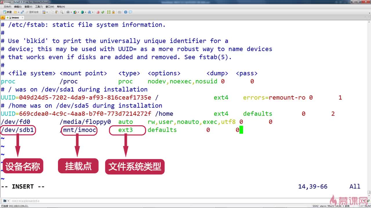 5.重启系统自动挂载,需要修改 /etc/fstab文件: