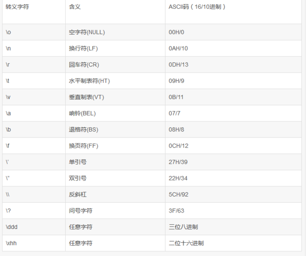 常用转义字符表