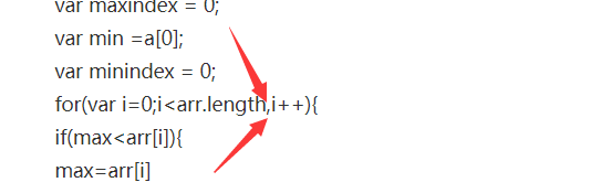 <script>var a=[55,3,6,7,8,3,1];var max =a[0];var maxindex = 0;var min =a[0];var minindex = 0;for(var i=0;i<arr.length,i++){if(max<arr[i]){max=arr[i]maxindex=i;}if(min>arr[i]){min=arr[i];maxindex=i;}}console.log(max);console.log(maxindex);console.log(min);console.log(minindex);</script>报这个错Uncaught SyntaxError: Unexpected token ) 我快不行了